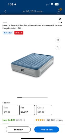 Intex 15" Essential Rest Dura-Beam Airbed Mattress with Internal Pump included - FULL$10Lake Forest, CA