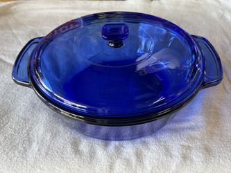 Vintage COBALT BLUE Anchor Ovenware Round Covered/Lid CASSEROLE DISH 9in/2qt USA$25El Cajon, CA