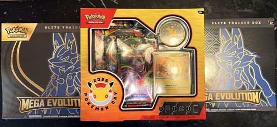 2 Mega Evolution ETB’S and 1 2026 Pokemon Day Box $180Gladstone, OR