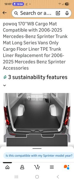 powoq 170''WB Cargo Mat Compatible with 2006-2025 Mercedes-Benz Sprinter Trunk Mat Long Series Vans Only Cargo Floor Liner TPE Trunk Liner Replacement$140Sun City, AZ