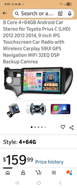 8 Core 4+64GB Android Car Stereo for Toyota Prius C (LHD) 2012 2013 2014, 9 Inch IPS Touchscreen Car Radio with Wireless Carplay 59UI GPS Navigation W$125Waddell, AZ