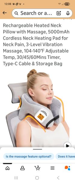 Rechargeable Heated Neck Pillow with Massage, 5000mAh Cordless Neck Heating Pad for Neck Pain, 3-Level Vibration Massage, 104-140? Adjustable Temp, 30$35Sun City, AZ