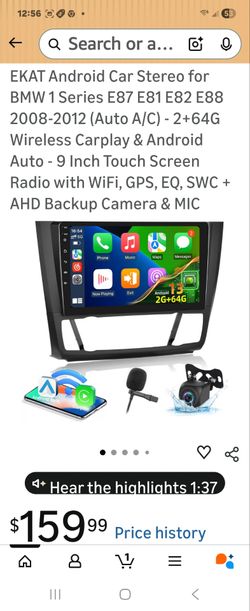 EKAT Android Car Stereo for BMW 1 Series E87 E81 E82 E88 2008-2012 (Auto A/C) - 2+64G Wireless Carplay & Android Auto - 9 Inch Touch Screen Radio with$125El Mirage, AZ