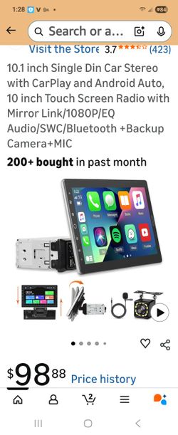 10.1 inch Single Din Car Stereo with CarPlay and Android Auto, 10 inch Detachable Touch Screen 1 Din Radio with Mirror Link/EQ Audio/1080P/SWC/Bluetoo$70Sun City, AZ