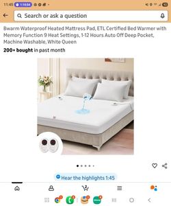 Bwarm Waterproof Heated Mattress Pad, ETL Certified Bed Warmer with Memory Function 9 Heat Settings, 1-12 Hours Auto Off Deep Pocket, Machine Washable$30Sun City, AZ