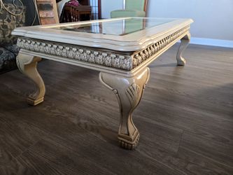 Elegant Solid Wood Coffee Table With Glass Top And Intricate Carvings$50Lawndale, CA