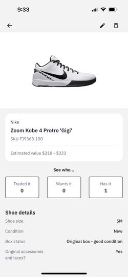 Nike Kobe Pronto Gigi$300Gresham, OR