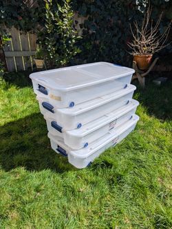 Sterilite Latching Wheeled Storage Bin 66 Quart Clear Underbed Storage Container with Latch Lid$45Carmichael, CA