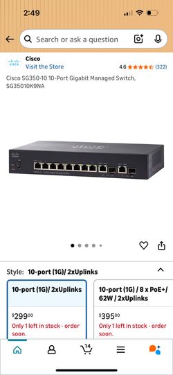 Cisco SG350-10 10-Port Switch$250Norwalk, CA