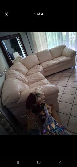 Sealy Cream Leather Cool Couch π$350Simi Valley, CA
