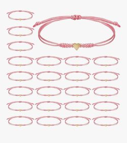 24 Pcs Pink Heart String Bracelets for Women - Adjustable Rope Braided Bracelet Pack Bulk Party Favors Coquette Cute Graduation Wedding Dance Team$15Phoenix, AZ