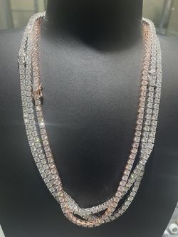 VVS Tennis Chains - Passes Diamond Tester - Available in Rose, White, Yellow - ✨ Crazy Shine - 4mm 22 inches $999Los Angeles, CA