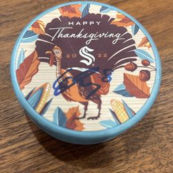 Seattle Kraken Autographed Cale Fleury Limited Edition Happy Thanksgiving Puck$45Seattle, WA