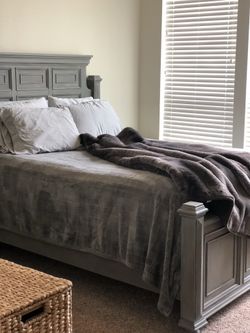 QUEEN BED FRAME w/ Headboard& Footboard Refinished In a gray Color$500Houston, TX