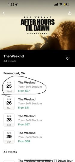 The Weeknd Tickets Wednesday June 25 $70Bellflower, CA