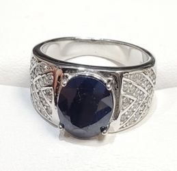 Silver Rhodium Plated 8g Ring Size 9 With Sapphire $39Nampa, ID