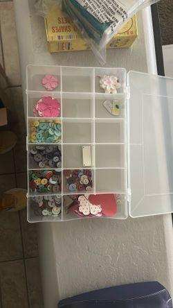 Scrapbooking Embellishments. Various Buttons And Flowers With Organized Lid Case$5Queen Creek, AZ