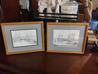 Vintage Clark M. Goff Framed Pen & Pencil Art Sketched, Susan Constant, Godspeed & Discovery Ships At Jamestown$100Airway Heights, WA