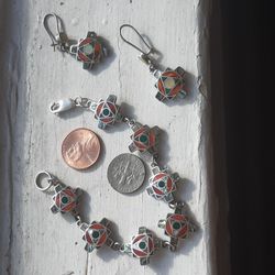 Peru Inca Cross Abalone Inlay Silver Bracelet & Earrings Set$55New York, NY