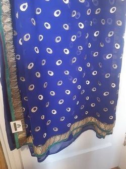 Gold Embroidered Royal Blue Chiffon Indian Sari Saree Fabric - Halloween