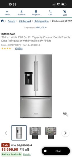 KitchenAid 36 Inch Wide 23.8 Cu. Ft. Capacity Counter Depth French Door Refrigerator w/Prints shield$1,650Visalia, CA