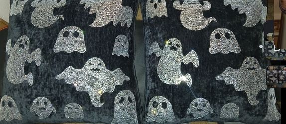 BRaNd NeW- HaLLoweeN- MAGASCHONI Ghost Rhinestone Pillows Black $40Riverside, CA