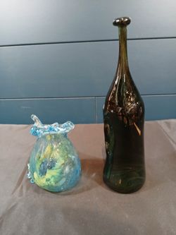 2 Pieces- Student Blown Glass Art Sculpture Paperweight Bottle Abstract Blue Yellow Green $20Eastpointe, MI