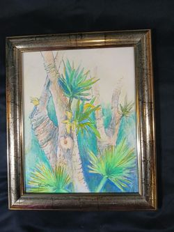 Original Signed Framed Contemporary Colorful Artwork By John Loree- Green Yellow Blue Bright Tropical Palm Tree Branch Nature$25Eastpointe, MI
