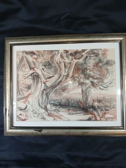 Original Signed Framed Contemporary Neutral Toned Artwork By John Loree- Black Brown Red Big Tree Forest Line Nature$25Detroit, MI