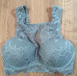 Victoria's Secret Pink Floral Lace High Neck Push-Up Bralette Stone Blue