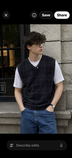 NWT Merona Men's Plaid Knit Sleeveless Acrylic Sweater Vest Black Gray V-Neck Size M$8Arcadia, CA