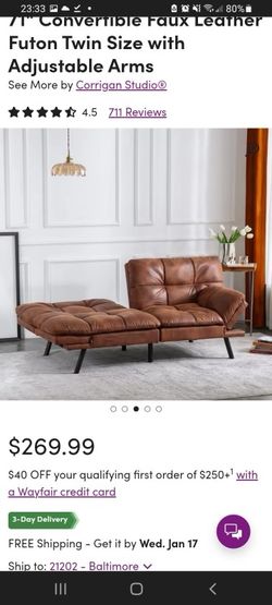Wide Adjustable Arms Faux Leather Sofa by Corrigan Studio$160Baltimore, MD