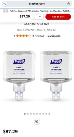 PURELL Advanced 70% Alcohol Foaming Hand Sanitizer Refill for ES8 Dispenser, 1200 mL, 2/Carton (7753-02)$50Cincinnati, OH