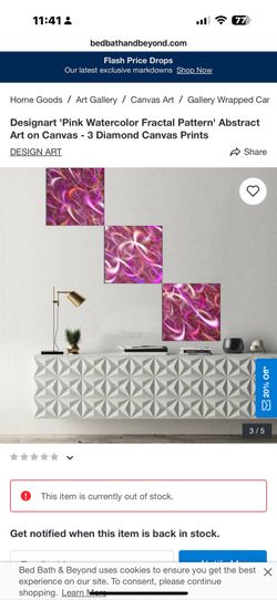 Designart 'Pink Watercolor Fractal Pattern' Abstract Art on Canvas - 3 Diamond Canvas Prints$20Cincinnati, OH
