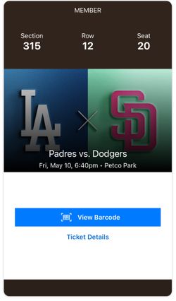 San Diego Padres vs LA Dodgers Friday May 10$190Chula Vista, CA