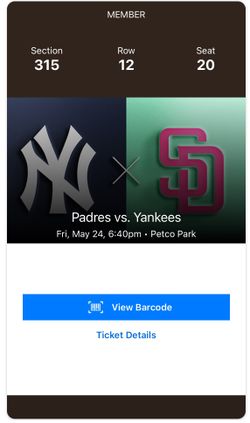 NY Yankees vs San Diego Padres May 24th (2 tickets)$170Chula Vista, CA