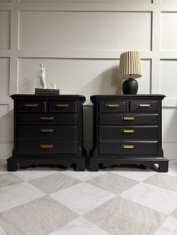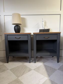 Stunning Two Toned American Oak Nightstand Set / Endtables / Side tables In Deep Navy Color $700Portland, OR