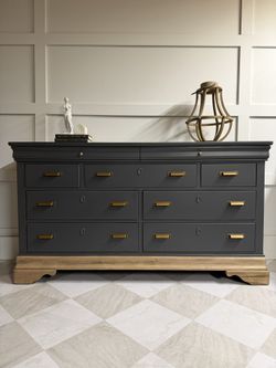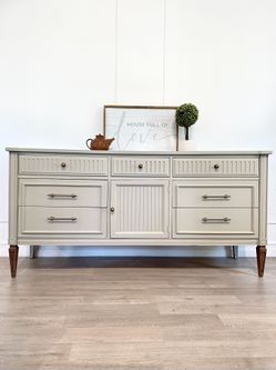 SOLD •Refinished Modern 9 Drawers Dresser / Buffet / Sideboard In Beige / Grey Colour$685Portland, OR