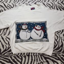 Hand sewn couple snowman shortsleeve ugly sweater size L Generra Shore white$49Seattle, WA
