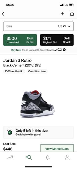 Black Cement 3s Size 5Y $250Jersey City, NJ