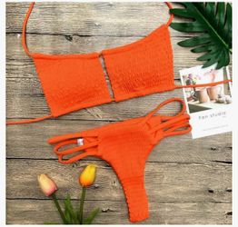 Women's Bikini Swimsuits Set Bandeau Orange Bikini Top Brazilian String Halter Smocked Keyhole Bathing Suit$25Hollywood, FL