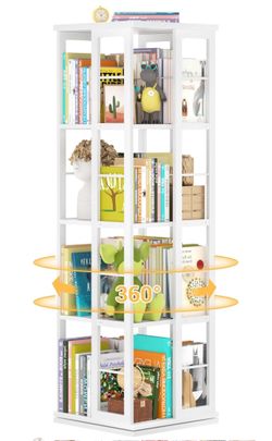 Bookshelf, 360 Display Wood Spi ning Bookshelf, Floor Standing Bookcase Narrow Shelf Revolving Organizer Storage R$102Hollywood, FL
