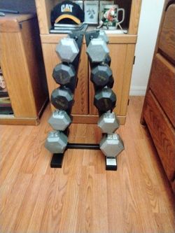 Five Sets Of Dumbbells And Rack 25 15 12 10 8$350Spring Hill, FL
