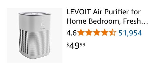LEVOIT Air Purifier for Home Bedroom, Fresheners Filter Small Room Cleaner with Fragrance Sponge for Smoke, Allergies, Pet Dander, Odor, Dust Remover,$29San Diego, CA