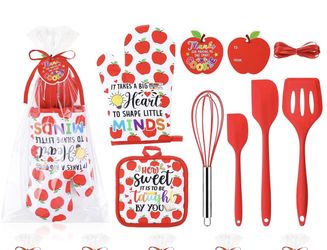 Baking Gift Set 6 Oven Mitt & Pot Holder Bundles with Red Silicone Utensils Thank You Cards & Gift Wrap Holiday Classroom Teacher Appreciation Gifts$15Grand Terrace, CA