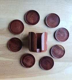 Mid-Century Danish Modern Teak Coaster Set – 8