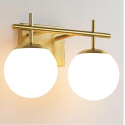 Gold Vanity Light, 2-Light Bathroom Lighting Fixtures Over Mirror Milky White Glass Globe Shades, Modern Vanity Lighting Fixtures Wall Sconce 14 Inch $39Fort Worth, TX