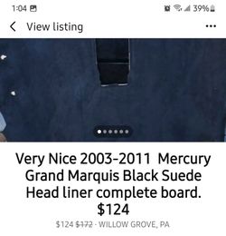 Beautiful Black Suede Headliner and Board For 2003-2011 Mercury Grand Marquis $104. Pick Up In Warminster Pa 18974$104Willow Grove, PA