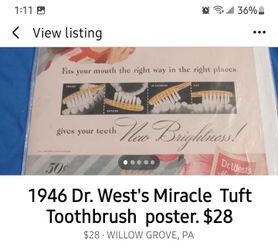 1947 Dr West's Toothbrush Denist Poster $29. # Denist $29Willow Grove, PA