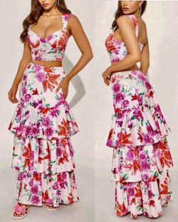 NWT Women’s Floral Two-Piece Crop Top & Tiered Skirt Set in White, Pink & Orange. Size L$35Lake Elsinore, CA